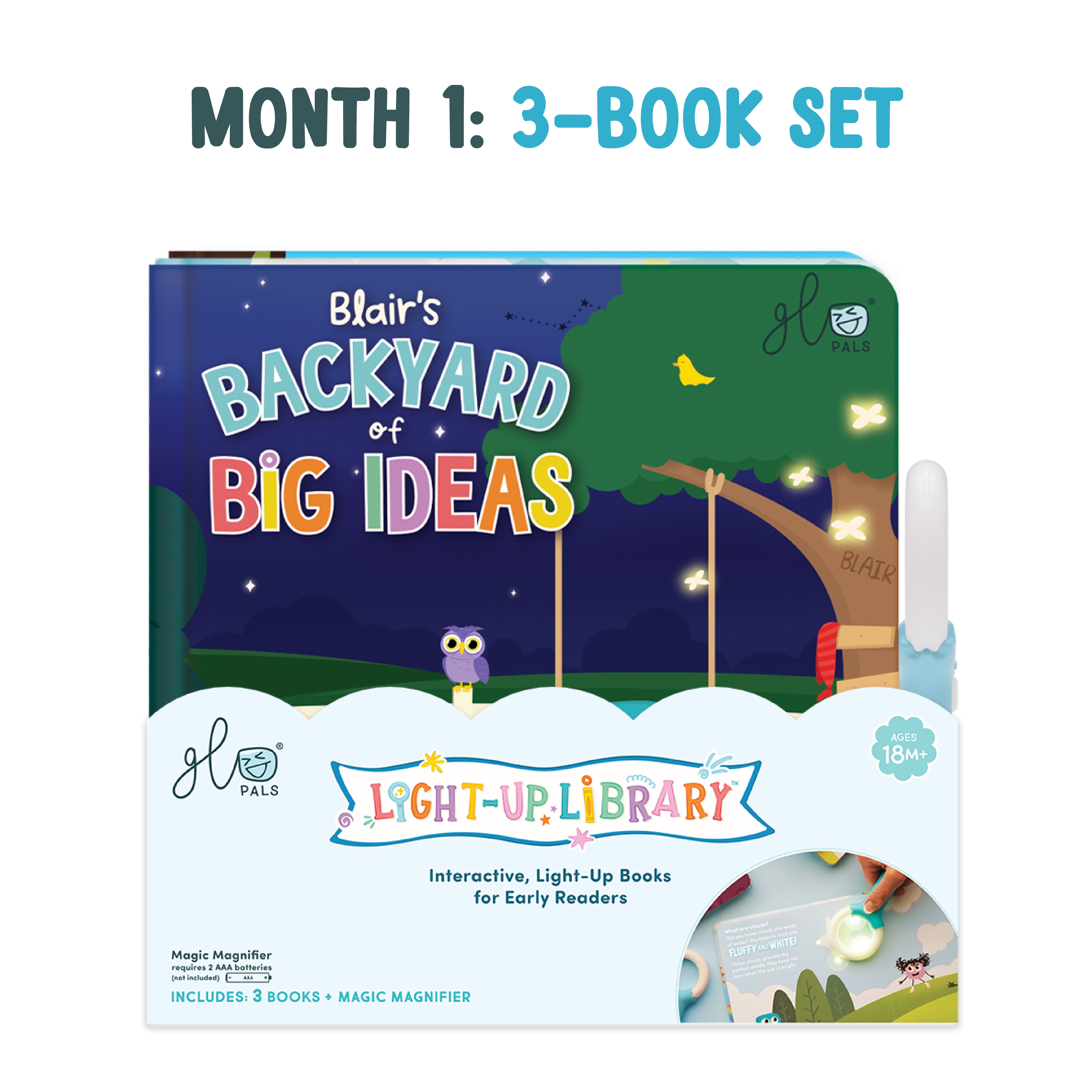 Month 1: Start Your Adventure Your first order includes the complete Light Up Library 3-Book Set and one Magic Magnifier.